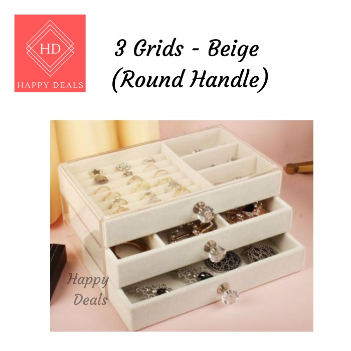 Jewelry Storage Box Transparent 3 Drawers Velvet Jewellery ...
