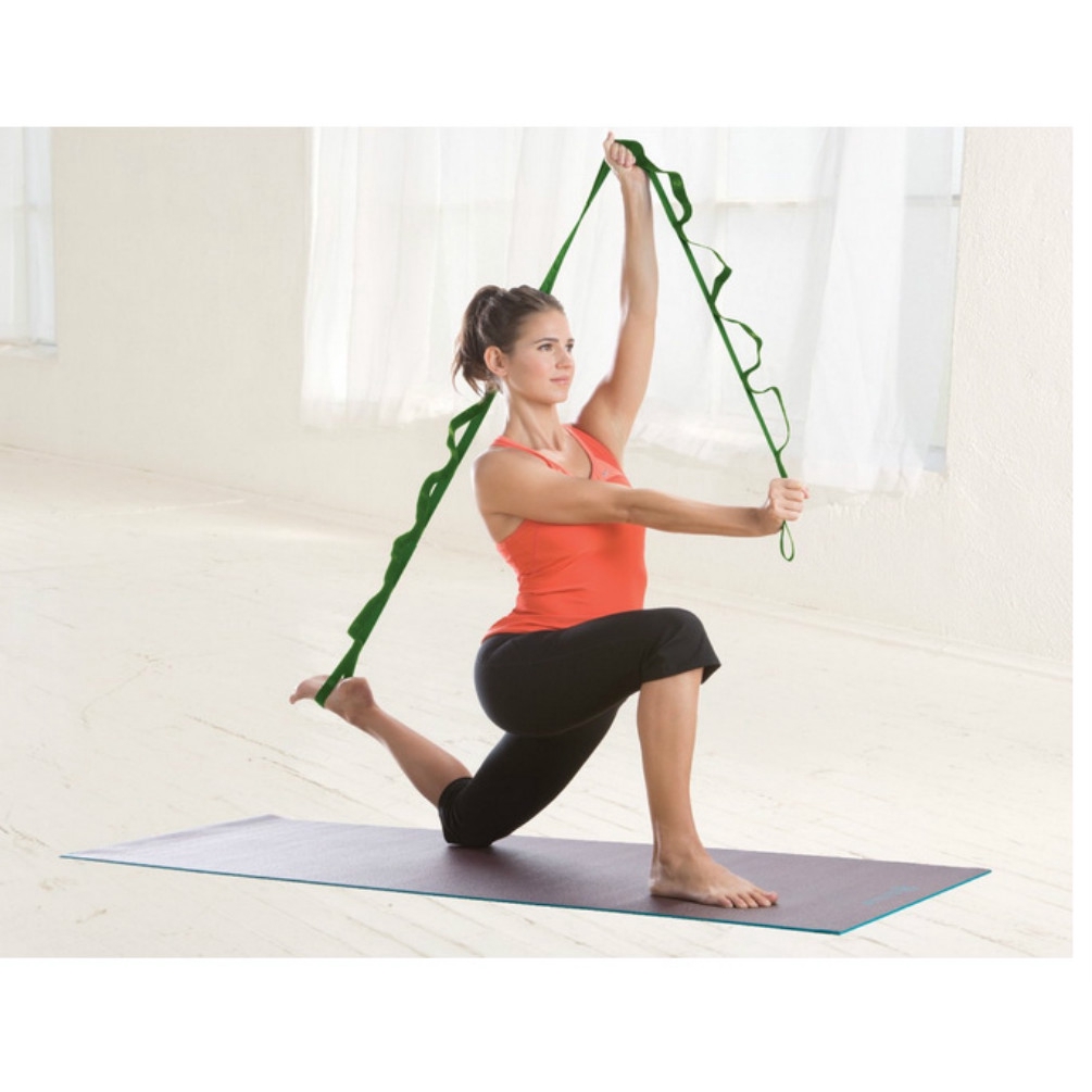 The Best Yoga Straps for Newbies and Pros The Zen Yoga Strap is designed in a shorter length for deeper stretching. It has three loops for easy progression and a tapered handle for a more comfortable one- or two-finger grip. This strap is made from 100% cotton and comes in eight different colors. Use two straps for independent hand foot poses or loop them together for a strap extension.