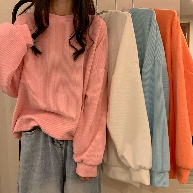 Plus Size Cotton Women's Sweatshirt Korean Hoodie Loose Long-Sleeve Blouse Casual Student Round Neck Clothing